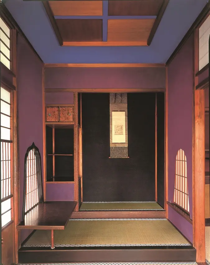 ▲位於2樓的「書間之間」使用亮麗醒目的藍色與紫色搭配,壁龕側的支柱、火頭窗戶等細節皆別具匠心,絲毫不馬虎。