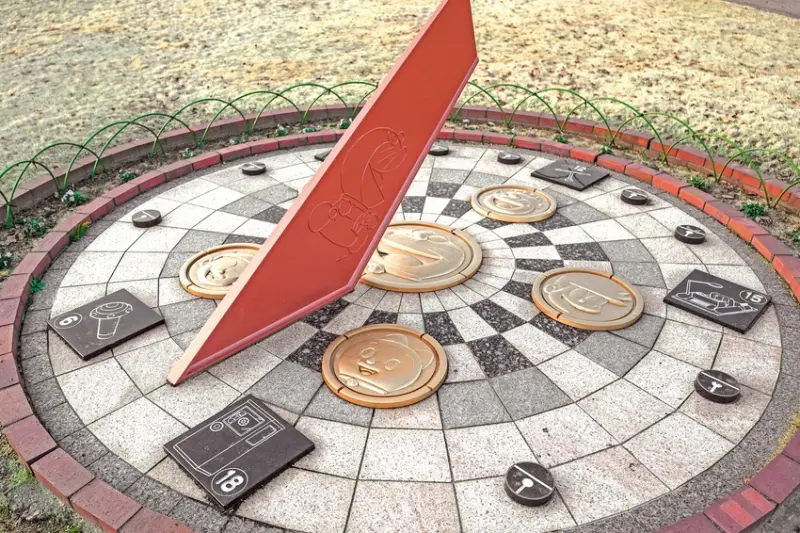 ▲除了雕像外,園內的日晷也融入了哆啦A夢的身影及各種道具法寶。