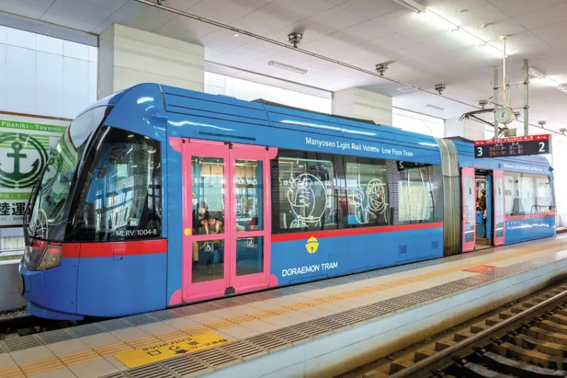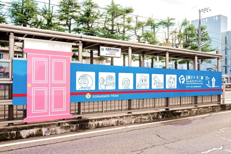 2012年為慶祝哆啦A夢誕生前100週年特別改裝了行經高岡市與射水市的路面電車。列車推出後便吸引日本國內外旅客前來搭乘,無論從外觀到車廂內裝,處處充滿哆啦A夢與其同伴的身影。原定運行2年的限定車輛,因好評不斷,目前預計行駛至2021年。