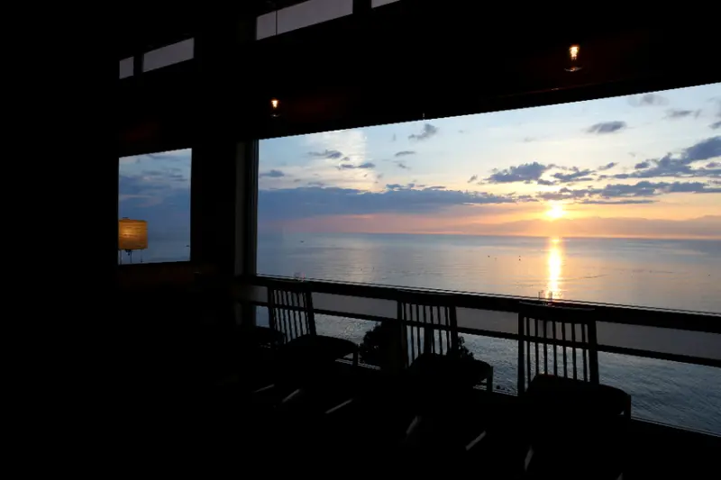 ▲飯店大廳也是賞日出的好地方,若遇晴天時,可清楚看見從連峰群中徐徐升起的太陽。