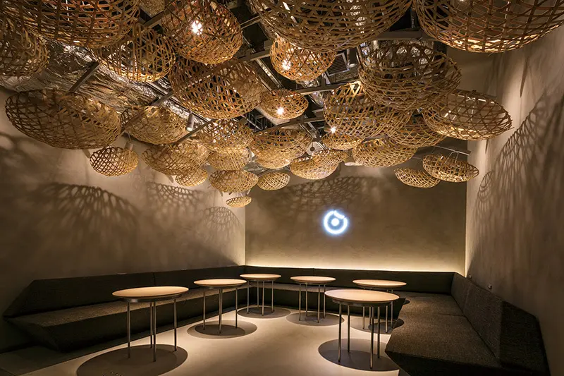 ▲572個傳統嵐山竹籃營造出圓頂空間,與下方精心現做的甜甜圈形成獨特畫面。