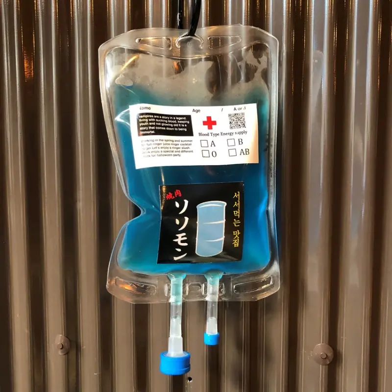 ▲点滴ドリンク(點滴飲)¥600/作成有如點滴造型的創意飲品,有柑橘、石榴柑橘等口味可選擇。
