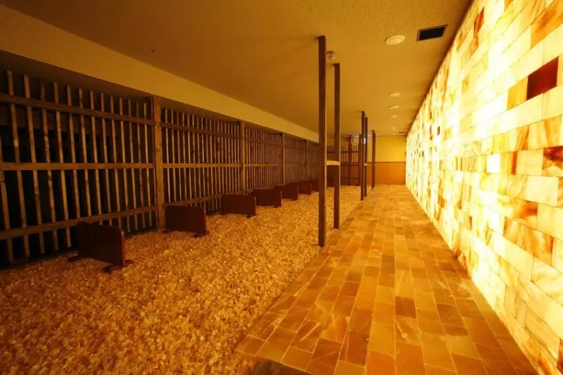 ▲以珍貴的藥礦石鋪設的汗蒸幕三溫暖空間,換上店家準備的服裝,不用脫衣就能享受。