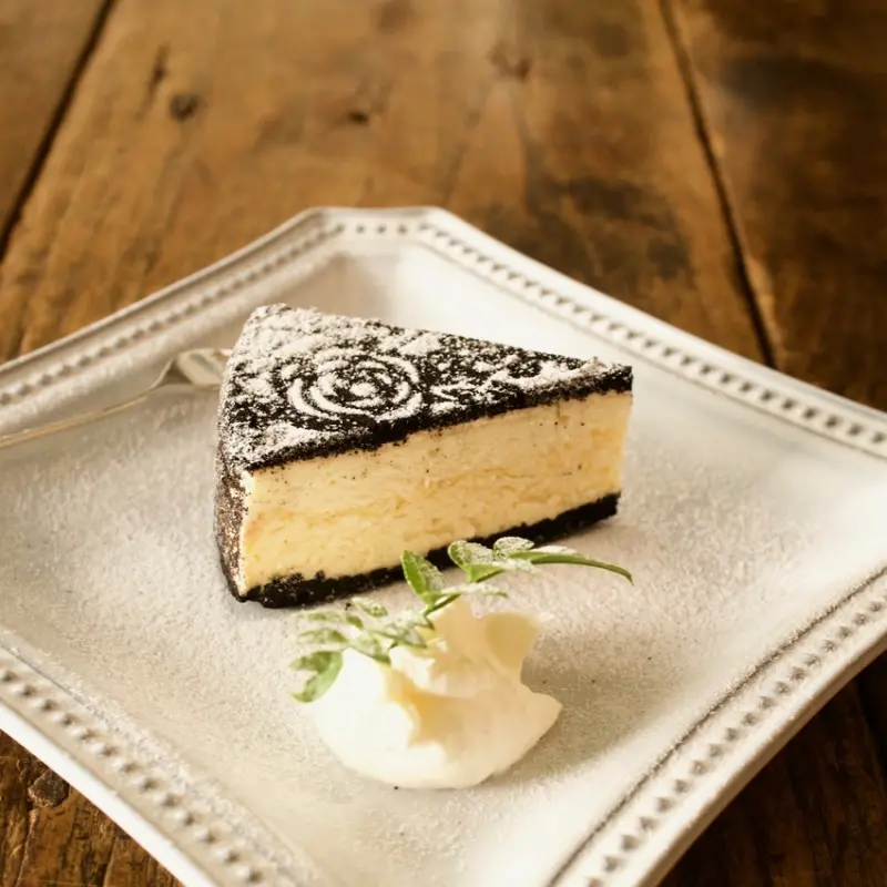 ▲黒いチーズケーキ(黑色起司蛋糕)¥420/片/20年來屹立不搖的招牌甜品,濃郁卻不過膩、過甜的起司滋味,連男性也愛不釋手,也可搭配葡萄酒、威士忌品嚐。