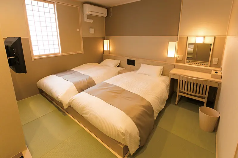 ▲融合日式與西式的現代風格客房,貼心的低矮床讓旅客睡得舒適。