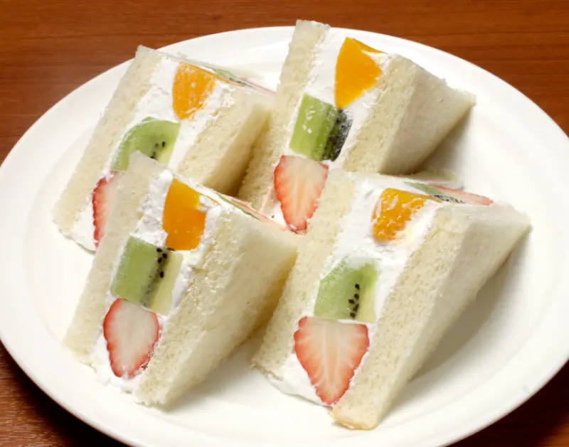 ▲ミックスフルーツサンド(綜合水果三明治)¥1250/以多樣新鮮水果搭配纖細奶油特製的水果三明治,風味絕佳。