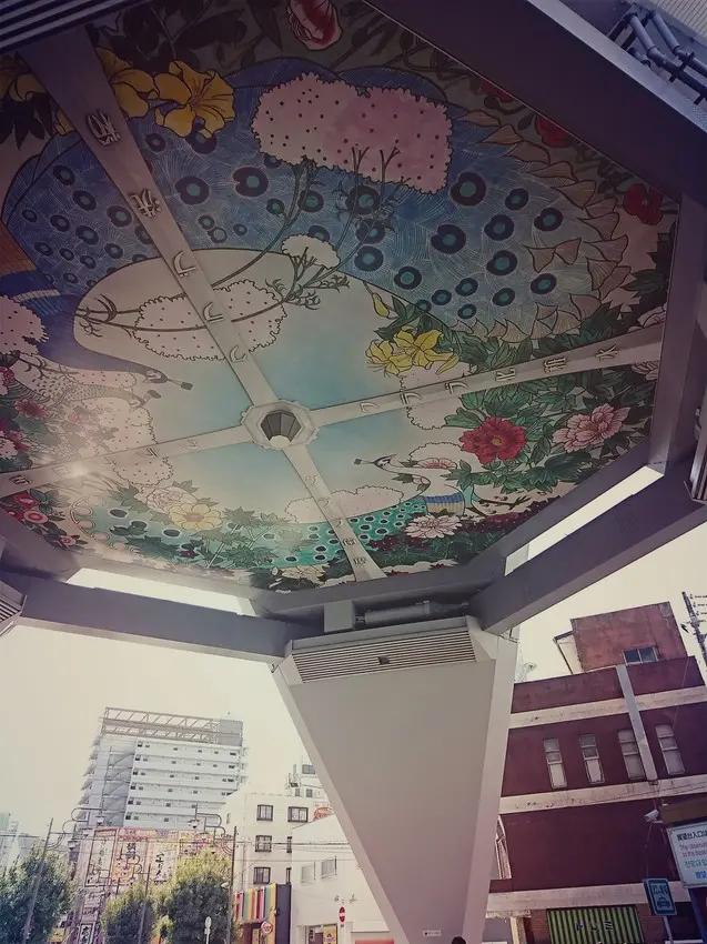 ▲塔下入口處的天花板還能看到獨特彩繪哦!