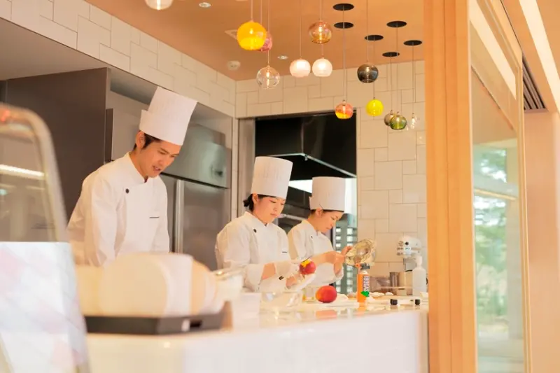 以特產鰻魚派聞名的「春華堂」集結了多項甜品,開設了甜點商場「nicoe」。除了銅鑼燒等傳統日式甜點外,也有西式糕點等琳瑯滿目的品項滿足不同饕客的味蕾,還可在此體驗甜點製作,大人小孩都能盡興而歸。