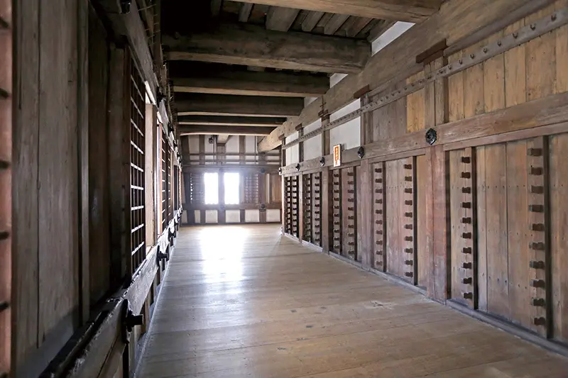 ▲天守閣內有武器儲備庫,牆上有置槍、鐵炮等的木架,以便敵軍來襲時能立刻拿武器出發。