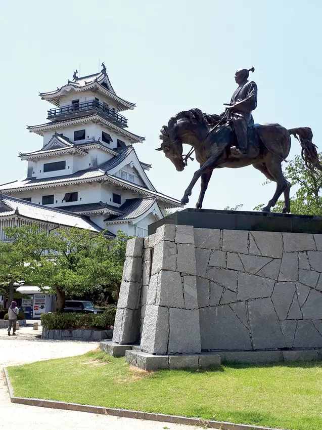 ▲為紀念今治城築城400年,2004年於城內吹揚公園設置了築城師藤堂高虎銅像。