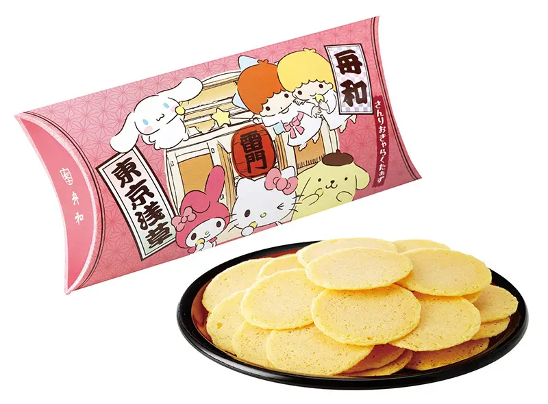 ▲與淺草著名老舖舟和合作推出的「金黃色芋金貨三麗鷗脆片」等都是別處買不到的人氣伴手禮(限量販售)。