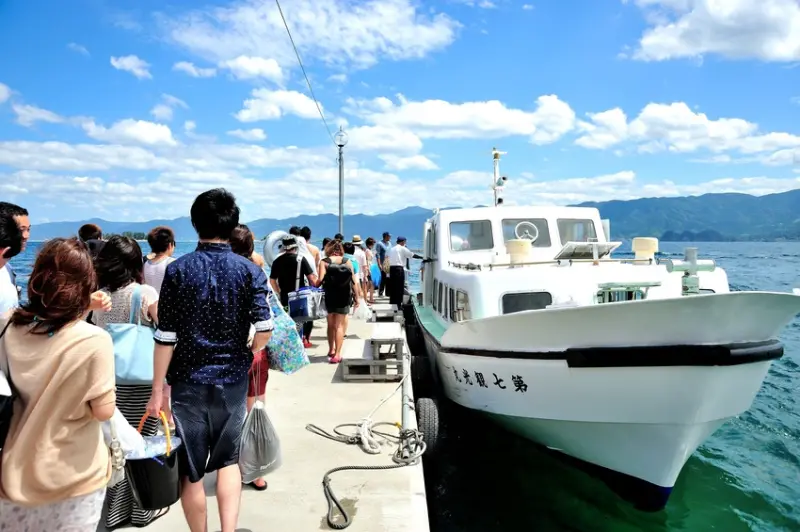 ▲每年7、8月限定行駛的渡船,是前往水島的唯一方法。