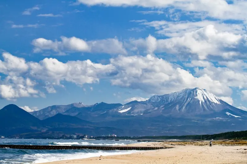 ▲溫泉、海水浴場皆備的海岸,無論哪個季節來都能盡情享受。還能欣賞被列入日本百大海濱的海灘能遠眺日本名山排名第3、別名出雲富士的「大山」。