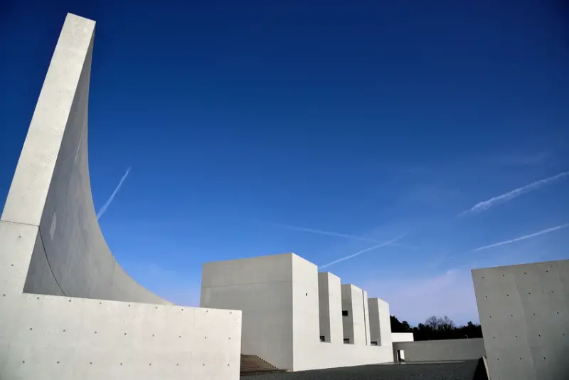 ▲獲藝術選獎文部科學大臣賞的建築,混凝土結構與方形設計和周邊田園風景形成強烈對比。