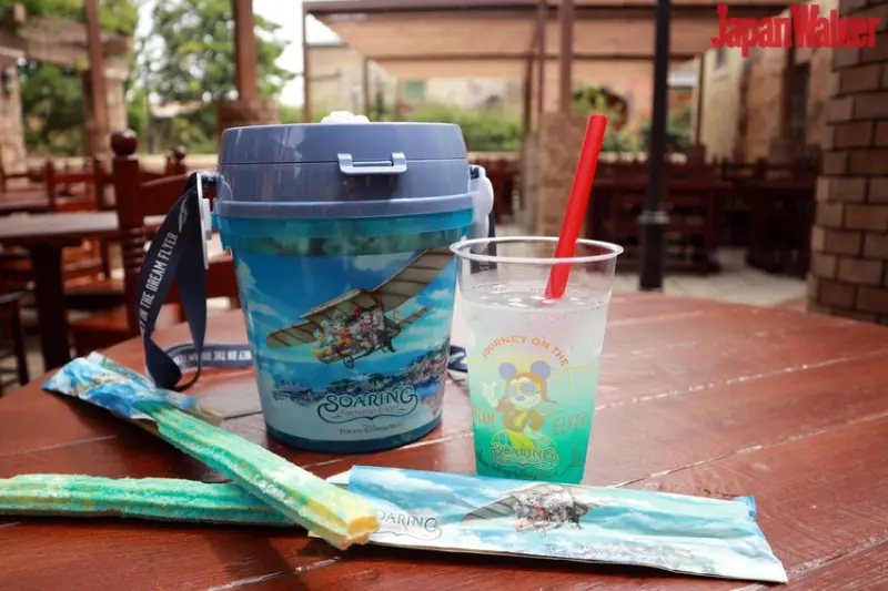 伴隨「翱翔:夢幻奇航」全新登場,園區也推出了專屬的主題餐點與商品,餐點共有4種,都是以蔚藍大海與天空為主題設計,包含吉拿棒、爆米花、飲品等,體驗娛樂設施之餘也能享用美食。