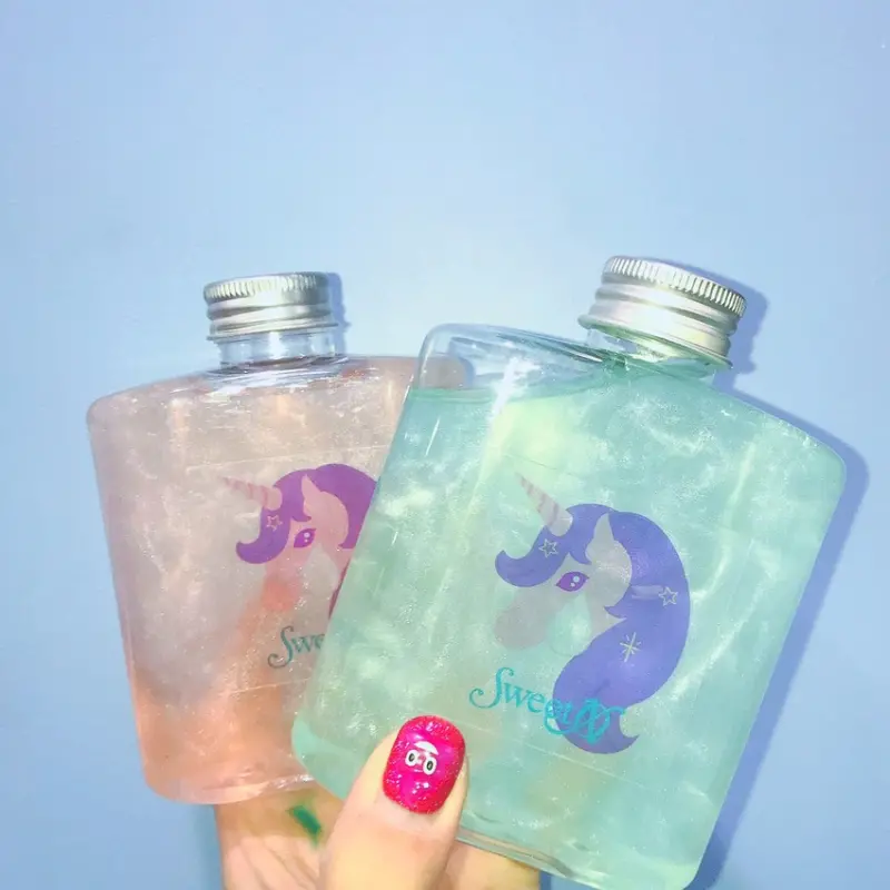 ▲ユニコーンの涙(獨角獸的眼淚)¥700/透過特殊瓶身與水蜜桃口味的飲品,營造出閃亮色澤,是店內的人氣商品。