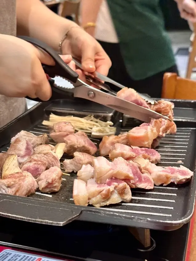 別人烤的果然比自已烤的好吃,我個人偏好是五花肉,因為量不是很多也不會吃到太膩,覺得膩的時候就生菜包肉放片泡菜跟大蒜,就感覺自已在演韓劇。