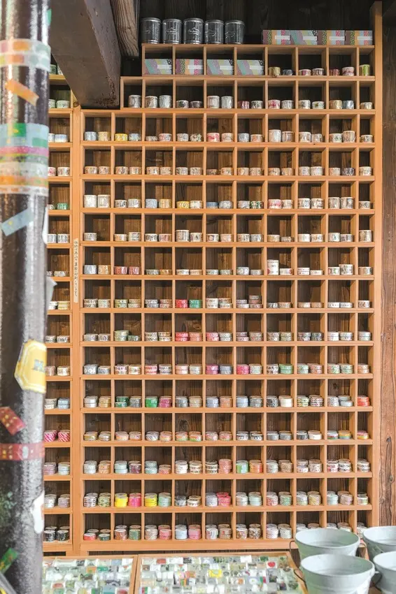 ▲牆面的每個小櫃子皆擺滿了不同紙膠帶。