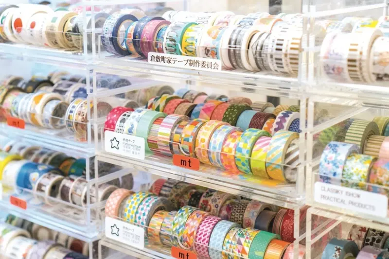 帶有濃厚日式風情的店舖「如竹堂」,除了販售常見的紙膠帶款式外,還有「倉敷意匠」及「倉敷町家製作委員會」推出的地區限定款,如桃太郎、町家街道等圖案。除了紙膠帶外,也有販售和風明信片、便條紙、紙氣球等,種類之多令人目不暇給,樣樣都適合作為旅途紀念或伴手禮,值得入內慢慢挑選。