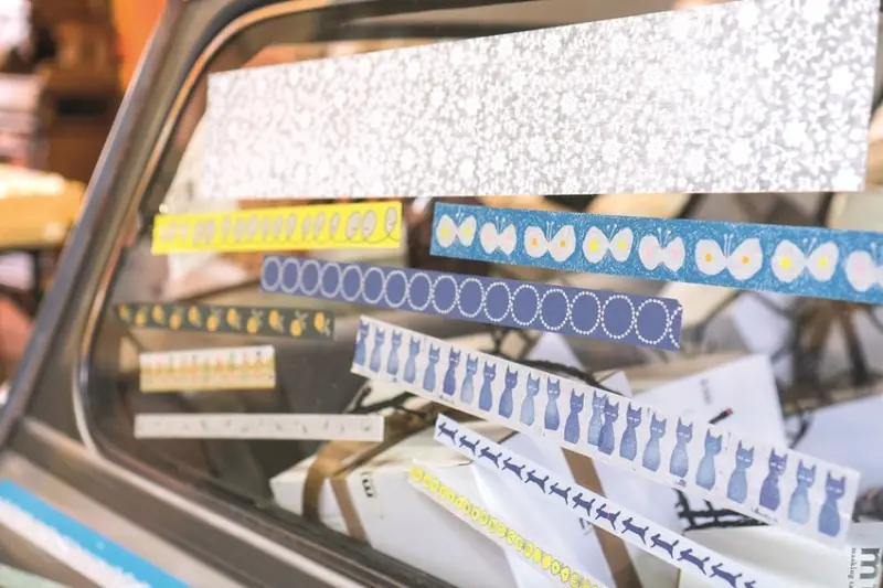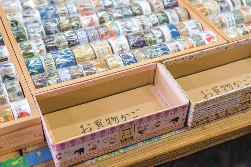 來到紙膠帶的發源地「倉敷」,當然少不了添置新款。mt紙膠帶專賣店「TANE」,整幅牆面或是桌上皆擺滿了各式各樣的紙膠帶,場面相當壯觀。此外,明白顧客對紙膠帶收納的需要,店家自行研發了紙膠帶收納盒,只要消費滿¥300,即可加購¥200厚紙板製的收納盒,另可用店家提供的紙膠帶裝飾,打造獨一無二的收納盒。