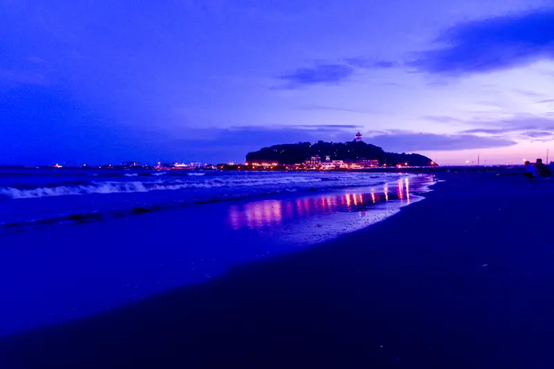 ▲最後一站就到江之島片瀨海水浴場,欣賞夜間浪漫景色。