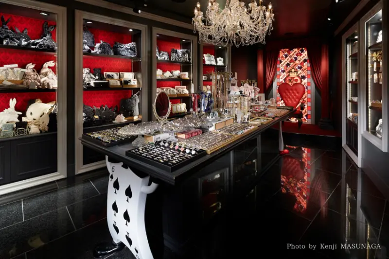 以《愛麗絲夢遊仙境》世界觀打造的雜貨店,從店外觀到室內裝潢,帶給人置身在愛麗絲誤闖的奇幻王國中,來客亦可與精緻的佈景擺設合影留念。店內商品也以愛麗絲夢遊仙境為概念設計,如故事中出現的縮小汽水、吃了會變大的餅乾,就連商品包裝也別具巧思,化身為故事元素,適合留作紀念或當作擺設。