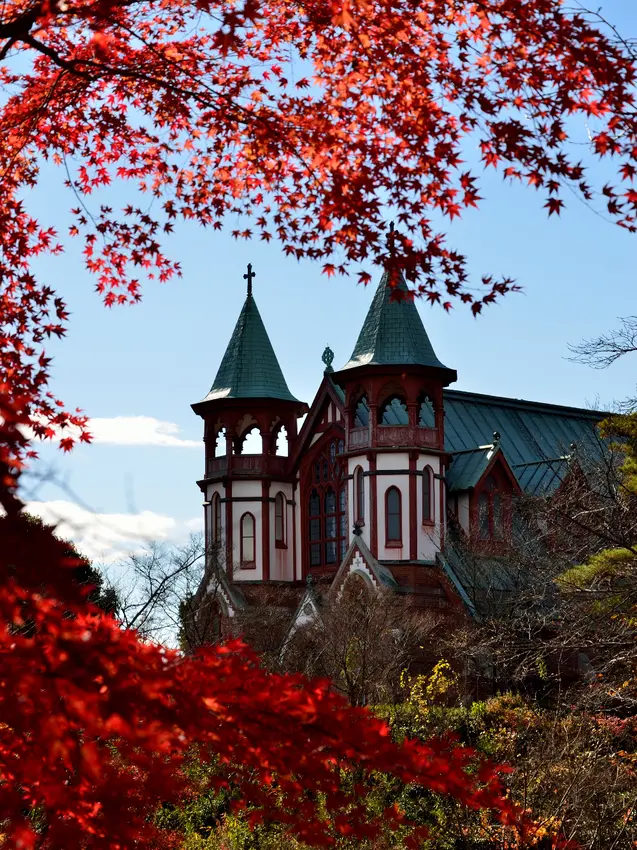 ▲楓紅與歐式建築交織的絕美景致,美不勝收!
