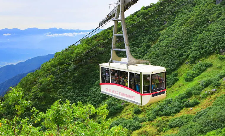 架設於長野縣中央阿爾卑斯寶劍岳的空中纜車,終點站標高2612m,是日本全國最高的車站,其高低差為日本第一。乘坐纜車可遠眺南阿爾卑斯山連峰、富士山,亦可將千疊敷冰斗絕景盡收眼底。