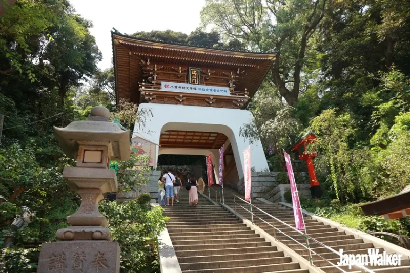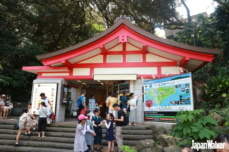 走到參道盡頭,就是進入江島神社必經的瑞心門(重要文化財)。江島神社在江之島上共分為3個宮,分別是邊津宮、中津宮與奧津宮,可以說整個島都在其神域之內。所在的地勢也是越來越高。除了爬上階梯參拜,還可以搭乘日本第1座戶外電扶梯輕鬆上山。電扶梯共分為3段,可一次購買3段搭乘券(¥360),也可以只買單段、或2段。
