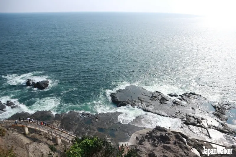 ▲腳下斷崖下方,就是江之島著名的夕陽賞景勝地「稚兒之淵」。