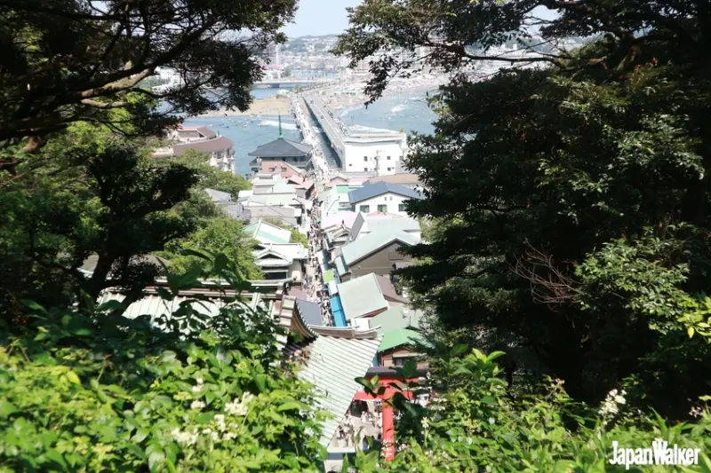既然要直攻江之島,可以選擇小田急電鐵,從新宿出發搭乘小田原線的快速列車,只要約1小時的車程,就能抵達片瀨江之島站,下車後通過長長的「弁天橋」,就能抵達江之島了。江之島是一座海拔約60公尺的小島,島上以日本3大弁天之一的「江島神社」為主,發展出熱鬧的參道商店街、展望台,還有穿梭在山間、起起伏伏的小徑,散落多樣個性的老鋪、小店,特別是新鮮的吻仔魚更是必吃特產,同時也是日本數一數二的夕陽勝地。