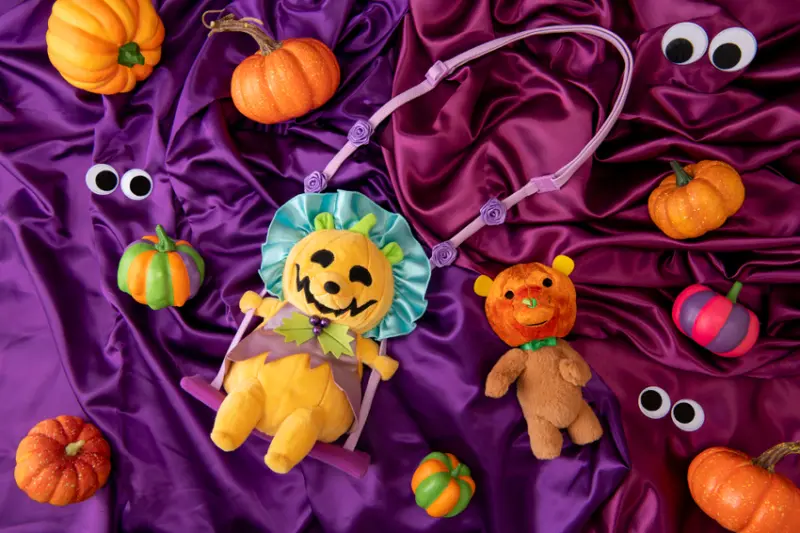 ▲「Boo!幽靈怪誕大遊行」中首次亮相的南瓜小熊也化身為可愛吊飾及俏皮背帶小包。