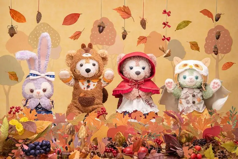 ▲達菲穿上了松鼠模樣的服飾,畫家貓是貓頭鷹模樣的,女孩們則是碎花洋裝及蝴蝶結,洋溢著滿滿秋季風情。