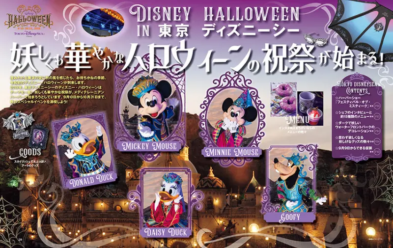 迪士尼萬聖節開始前,萬聖節系列商品搶先在9/2(一)攻佔東京迪士尼度假區各個購物商店,如化身逗趣的幽靈米奇商品、可愛的黑貓耳朵裝飾等。此外兩大園區也推出專屬的萬聖節商品,如樂園限定身穿幽靈服飾的米奇、或是遊行登場的南瓜小熊,海洋則推出表演秀「詭秘盛典」相關周邊。