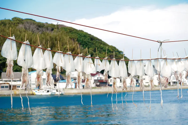 位於佐賀最北端的呼子港旁,每天清晨07:30開始就會聽到熱鬧的叫賣聲,販售多樣新鮮海產、花卉蔬果的「呼子朝市」,是日本3大朝市(晨間市場)之一,全長200公尺,共有約50間攤販聚集,沿路都可試吃。呼子港盛產花枝,不論是市場販售的新鮮花枝,或是懸掛在海邊製成的花枝乾,都相當美味。
