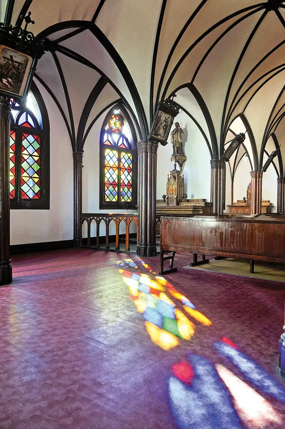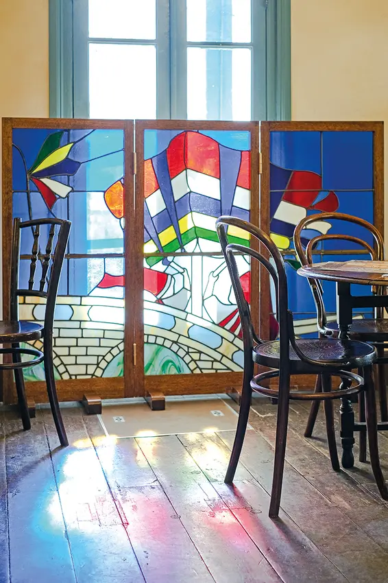 ▲內部局部空間改建為咖啡室,以彩繪玻璃裝飾,優雅美麗。