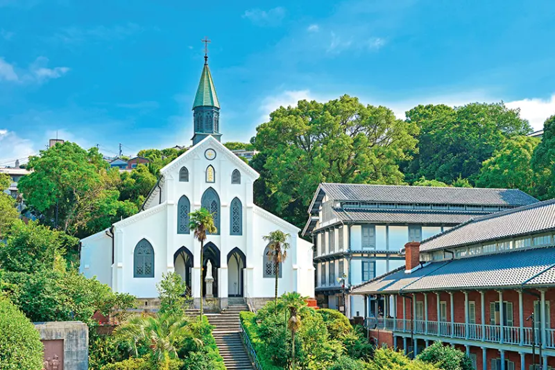 江戶時代唯一能接觸海外事物的長崎,吸收了眾多西方文化,也是天主教傳入日本的第1站,現在依然保留眾多的古老教堂,展現獨特的氛圍。2018年被列入世界遺產的大浦天主堂,建ㄖ於1864年,是日本現存最古老的教堂。除了建築外觀及聖母瑪利亞像外,莊嚴的哥德式教堂內部也相當可觀,彩繪玫璃在陽光照耀下,絢麗無比。