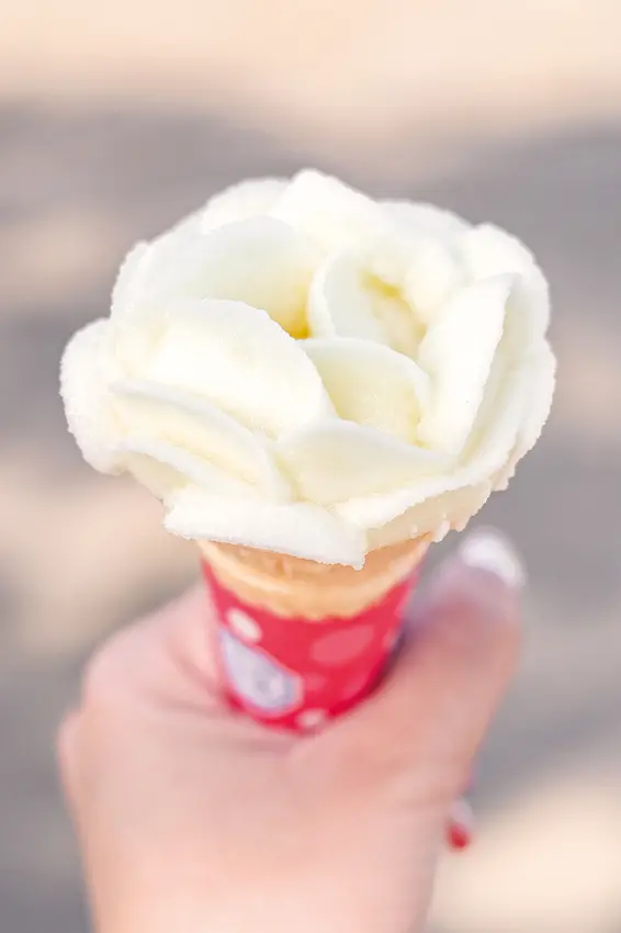 ▲時常出沒在眼鏡橋附近的攤販,販售的玫瑰花冰淇淋,是在地人從小吃到大的美食。