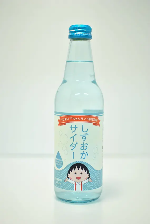 ▲しずおかサイダー(靜岡氣泡飲)¥216/使用當地對人體有益的名水製作的氣泡飲,搭配小丸子可愛的外包裝,立刻成為人氣商品。