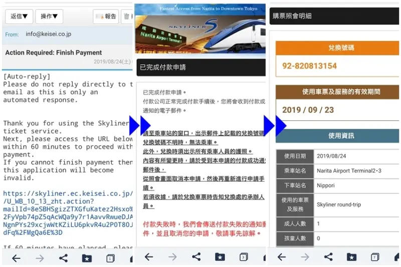 國外旅客限定的Skyliner折扣票「Skyliner Discount Ticket」,可直接在網上訂購,就算是搭乘前才下訂也沒問題。從訂購到兌換流程如下: