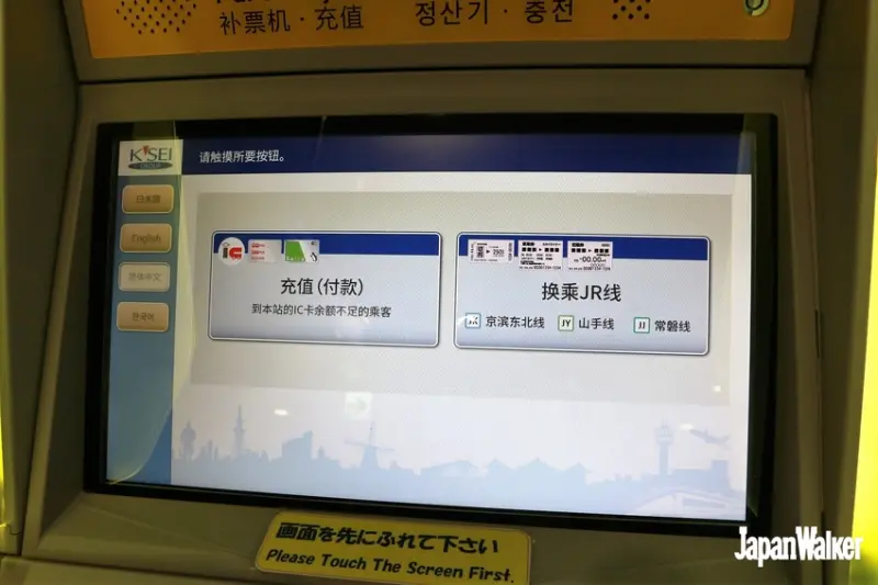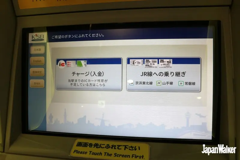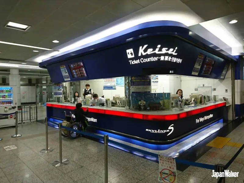 走出自動門,就是通往電車月台的區域,這裡共有JR與京成電鐵2種鐵道匯集,依自己要搭乘的列車前進,可別走錯了。左手邊可以看到紅色的JR票務窗口,與藍色的京成電鐵票務中心;右側則是京成電鐵的一般售票櫃台及剪票口。若你是已經在網上訂購優惠票,要去兌換的話,請千萬不要前往一般售票櫃台,而是要到左手邊的票務中心,才能兌換哦。到窗口出示護照及手機中的「兌換號碼」,就能拿到來回車票了。