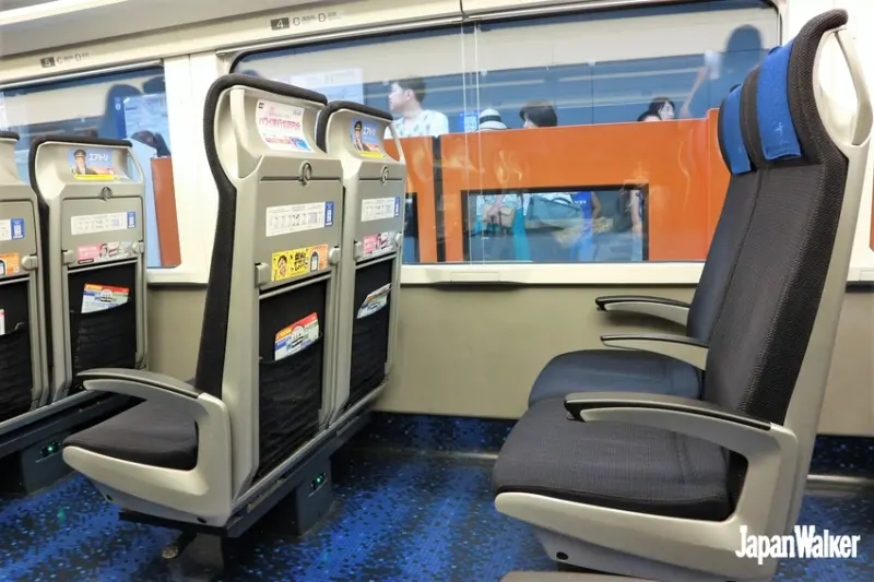 Skyliner一樣非常寬敞,除了車廂尾端設有專門放置行李的空間外,若不是太大的行李,其實也可以直接放置在座位(寬度很夠)。此外座位還附有充電插頭,相當便利。