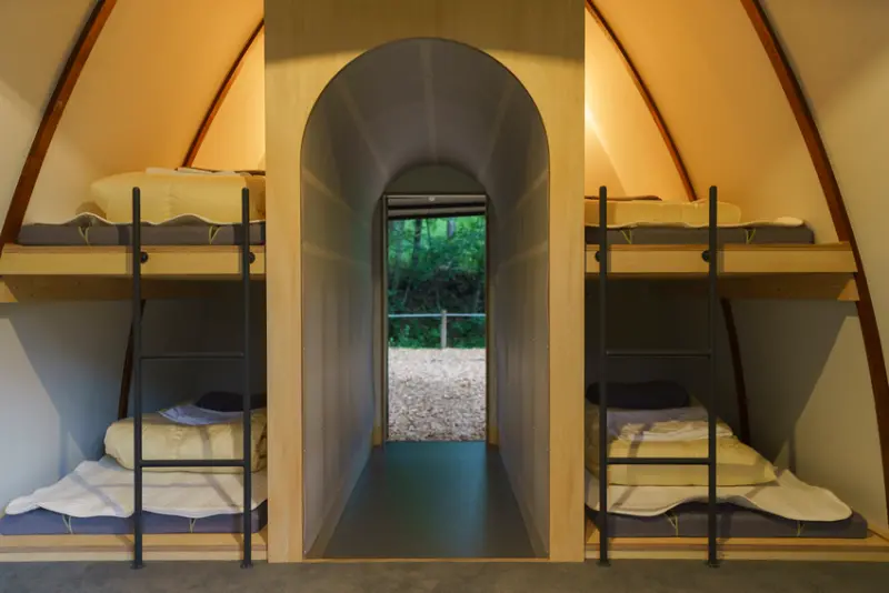 ▲一樣大小的CABIN空間分為3種格局,TypeB設置了4張單人床,適合家人朋友一同入住。ECO格局刻意不擺放任何傢俱、寢具,由旅客自由打造。