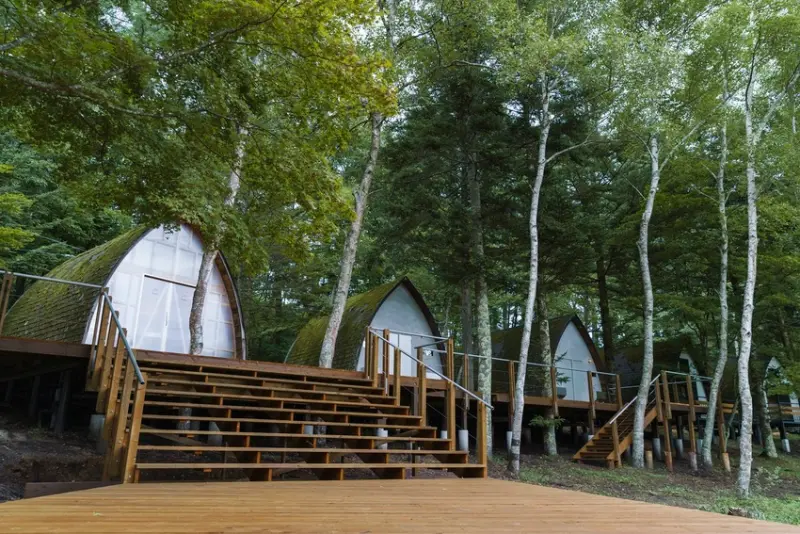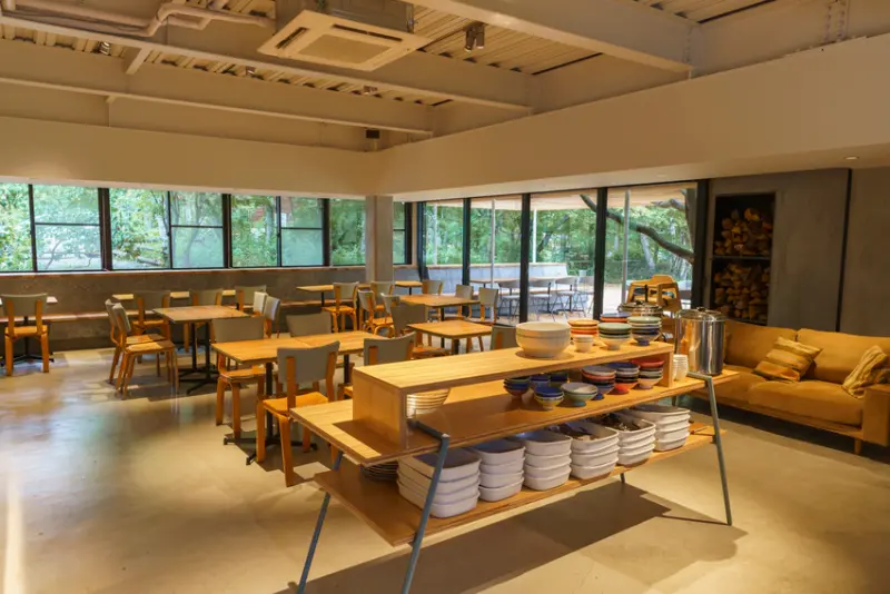 成功揮灑了時尚品牌拿手的精緻風格,住宿空間分為3種形態,包含改建自湖畔溫泉旅館的「LODGE」、位於露營區森林中的小木屋「CABIN」,以及直接入住戶外帳篷的「CAMP」,每一處都能感受到時尚品牌獨到的設計與風格。晚餐可品嚐以當地食材打造的頂級套餐、或是BBQ,早餐則是以高原蔬食等特製的Buffet。當然也設有店舖,能夠買優質的時尚好物。