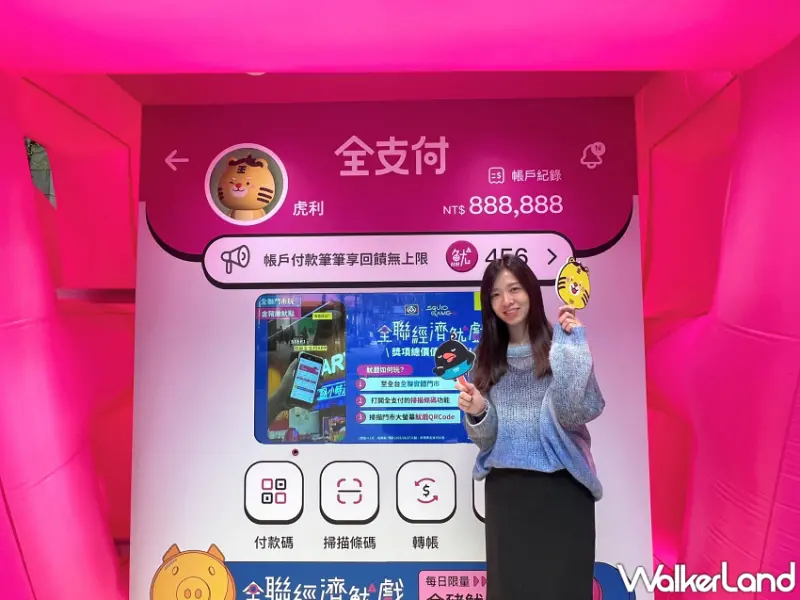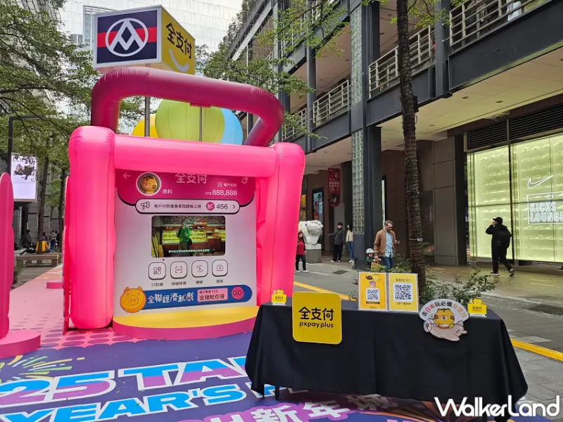 此次「全聯經濟魷戲」攤位設計突破傳統,以巨型全聯購物籃造型空降香堤大道,外觀融入影集中粉紅守衛與綠色玩家服飾的經典元素,搭配吉祥物福利熊與虎利身穿綠色運動服,整體風格趣味十足。夜晚,攤位屋體亮燈後更呈現出迷人燈光效果,吸引了大批民眾駐足拍照。現場設有全支付打卡牆,讓影迷與粉絲可在充滿電影元素的氛圍中拍攝出獨具特色的照片。![]()