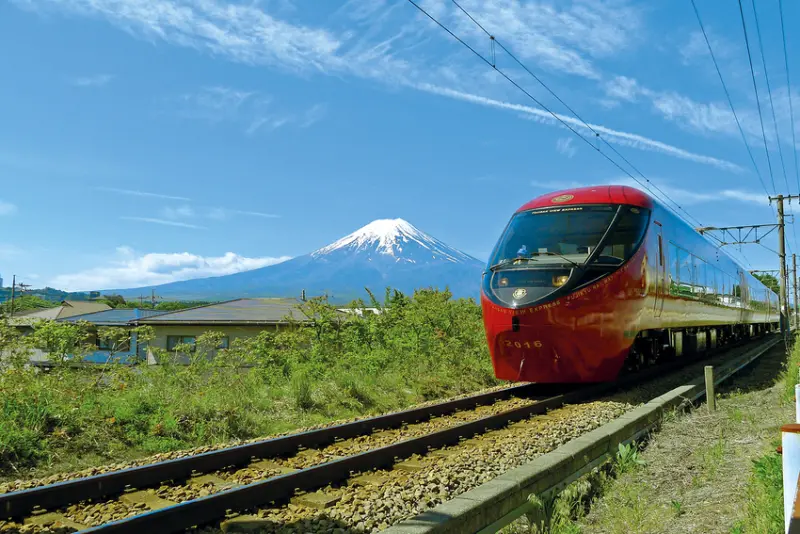 接棒富士山特急2000系列車的朱紅色觀光列車,請來列車設計大師水戶岡銳治設計,「富士山View特急」成為距離富士山最近的絕景列車。列車由3節車廂組成,宛如置身頂級飯店的1號車廂採預約制,能一面品嚐飲品,一面欣賞窗外景致;2、3號的自由席車廂則販售各式獨家伴手禮、原創商品等,讓乘車時間也成為旅途的美好時光。