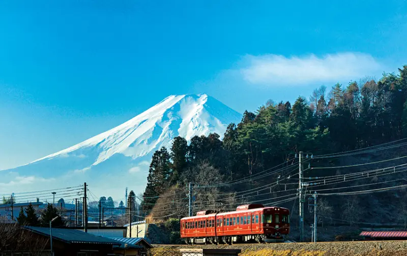 ▲搭上懷舊風的觀光列車盡享富士山絕景。