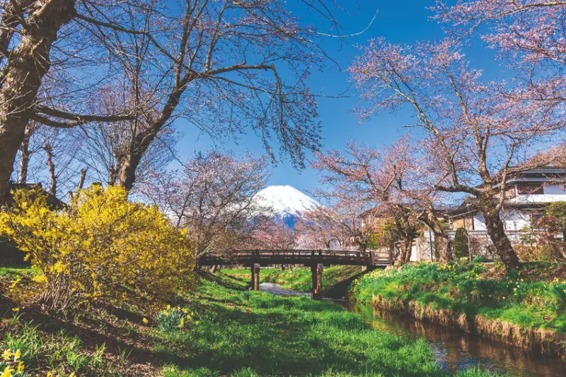 ▲無論何時走訪,富士山景與忍野八海都帶給來客不同的風情。