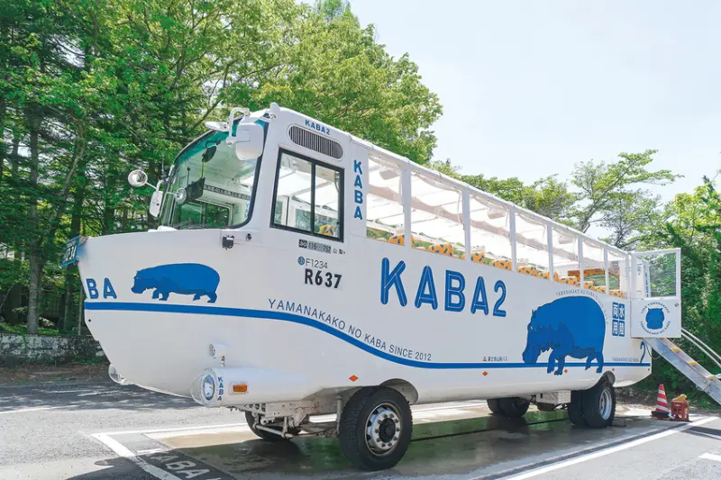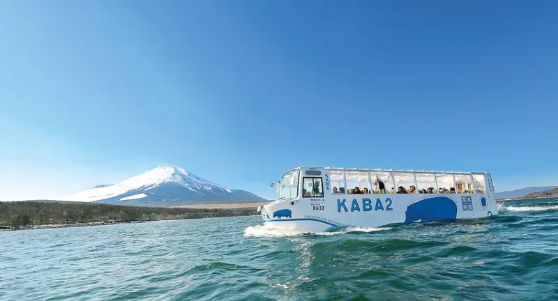 搭乘水陸巴士賞富士山「水陸両用バス 山中湖のカバ」