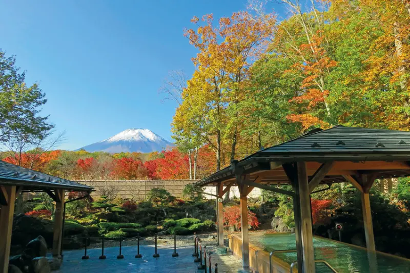以絕景露天溫泉聞名的紅富士之湯,無論男湯、女湯都能欣賞近在眼前富士山美景,就連室內溫泉也毫不遜色,同樣可邊泡湯邊賞富士山景。來到露天溫泉區,享受溫泉與山景療癒的同時,隨四季變化的周邊景致也帶來截然不同的風情。此外,這裡的溫泉泉質屬於高鹼性,具美肌效果,被稱為「美人湯」,深受女性喜愛。